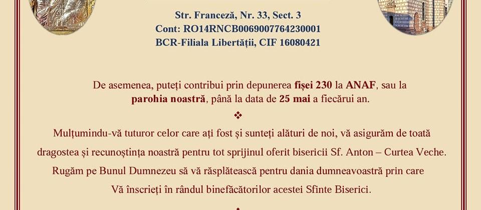 Biserica Sfântul Anton - Curtea Veche va fi sfințită.